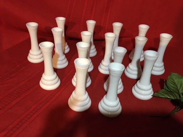 Title (ebay affiliate link): Lot of 16 Randall White Milk Glass 6" Bud Vases Wedding Shower