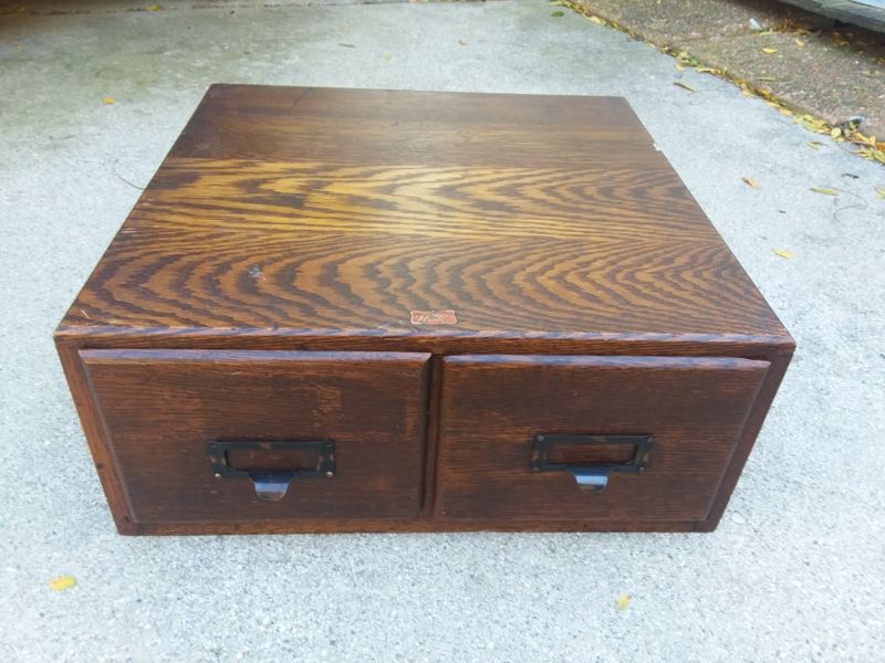 Title (ebay affiliate link): Vintage Weis Index Card Catalog 2 Drawer Oak File Box Cabinet