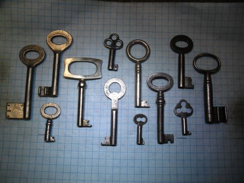 Title (ebay affiliate link): LOT OF 12 ANTIQUE SKELETON, FURNITURE, BARREL, CABINET AND OLD LOCK KEYS