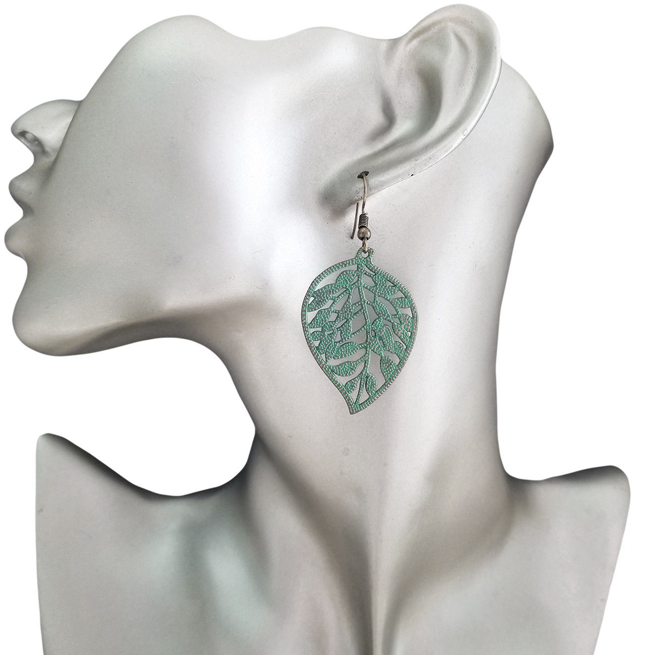 Title (ebay affiliate link): New Womens Antique-Green-Tone Hollow Leaves Pendant Dangle Drop Hook Earrings