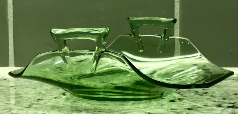 Title (ebay affiliate link): Vintage Heisey Moongleam Green Depression Glass Rolled Octagon Bon Bon Bowl