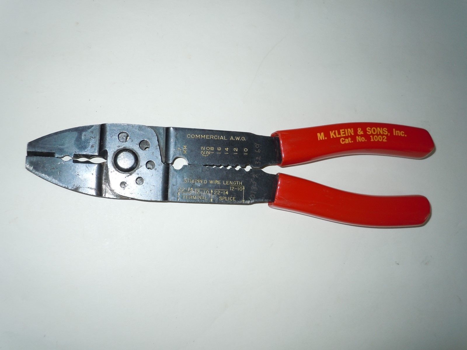 Title (ebay affiliate link): Vintage M. Klein & Sons Wire Cutter Stripper Crimper, No. 1002, Harrisburg, PA