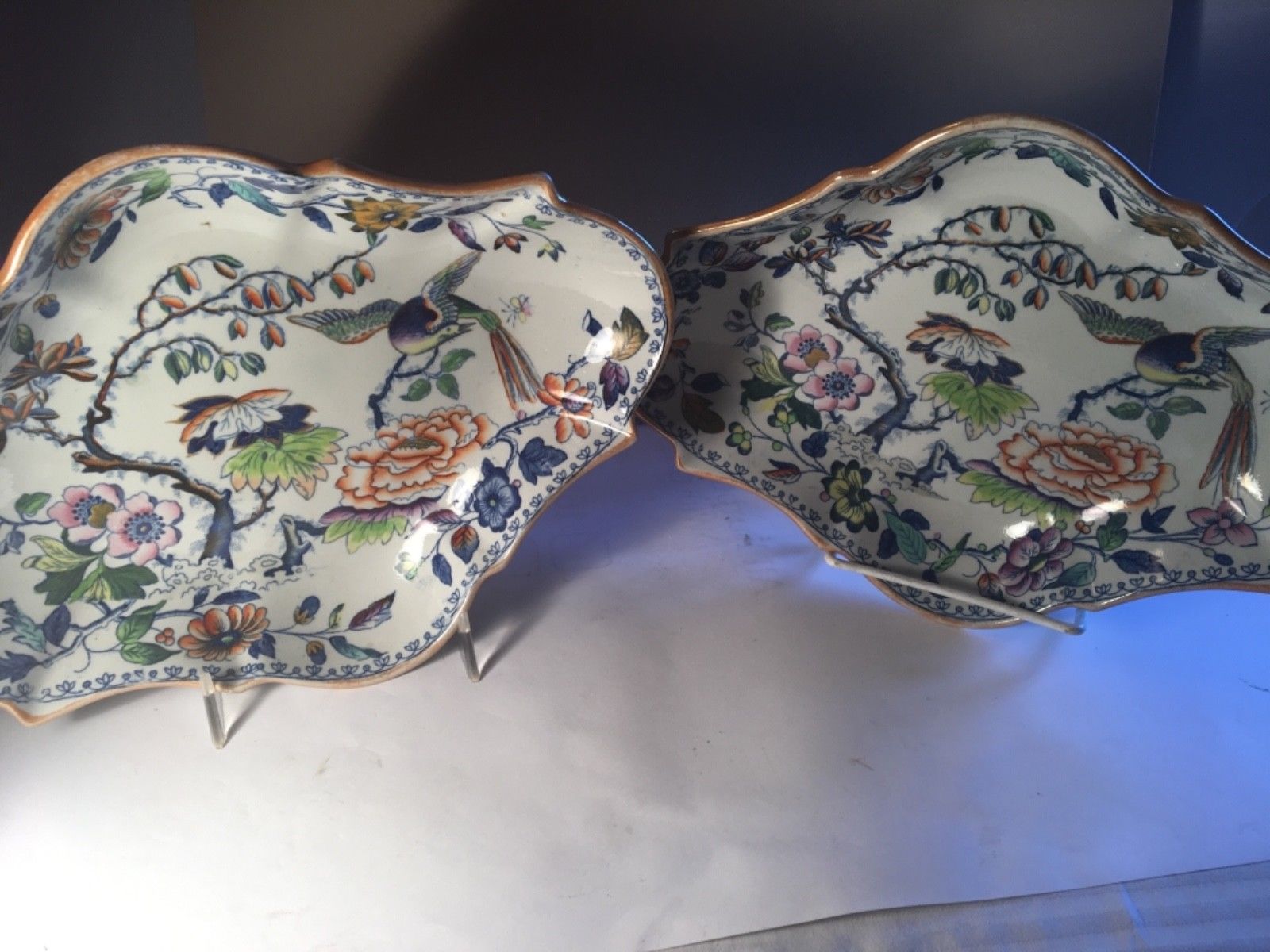 Pair English Davenport Imari Stone China Cartouche Shape Serving Trays, 19th C