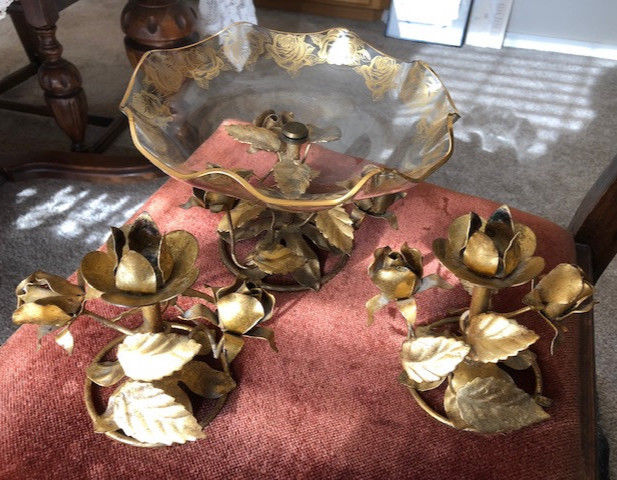 Title (ebay affiliate link): Vintage Italian Toleware 3 Piece Centerpiece, Candle Holders and Bowl Set*