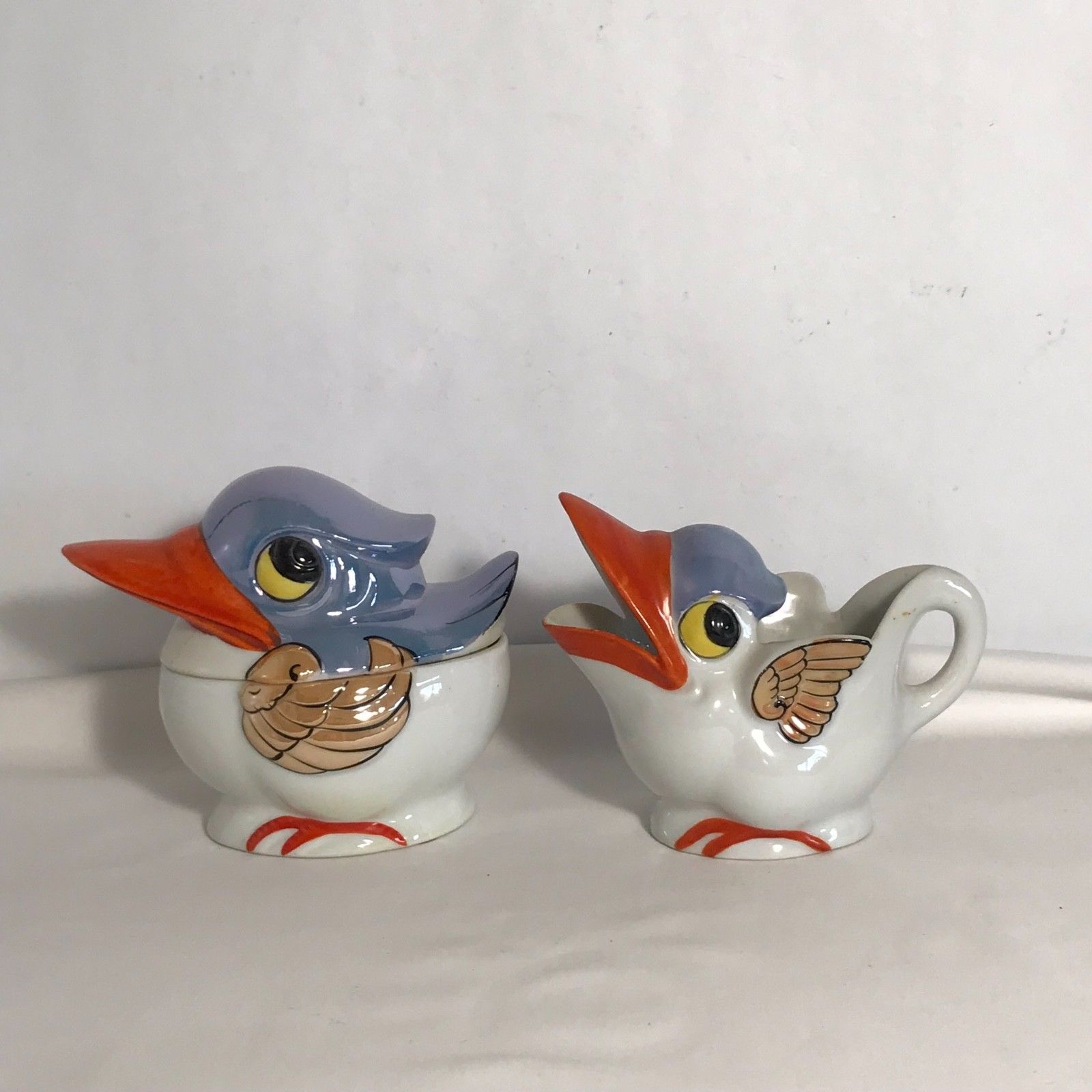 Title (ebay affiliate link): Vintage Lusterware Kookaburra Bird Ceramic Creamer and Sugar Dish Made in Japan