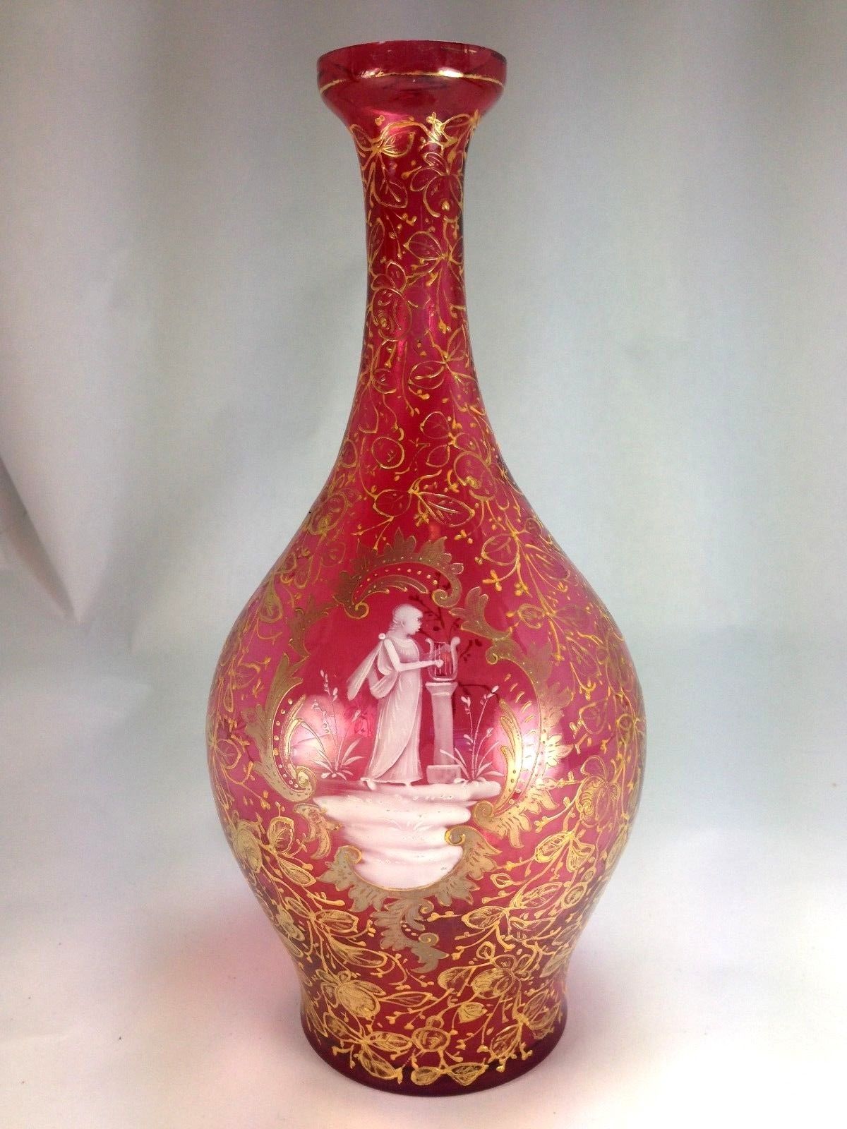 Title (ebay affiliate link): Antique Scarce Mary Gregory Cranberry Glass & Enamel "The Harp" Vase