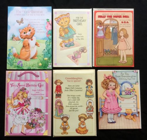 Title (ebay affiliate link): Lot 6 Vintage Birthday Paper Doll Punch-Out Greeting Cards Unused