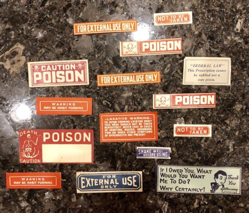Title (ebay affiliate link): Antique Vintage Apothecary Pharmacy Drug Store ORIGINAL LABELS LOT of POISON +++