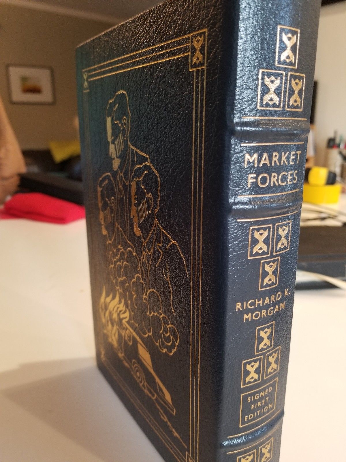 Title (ebay affiliate link): Easton Press MARKET FORCES by Richard K. Morgan SIGNED FIRST EDITION, Like New