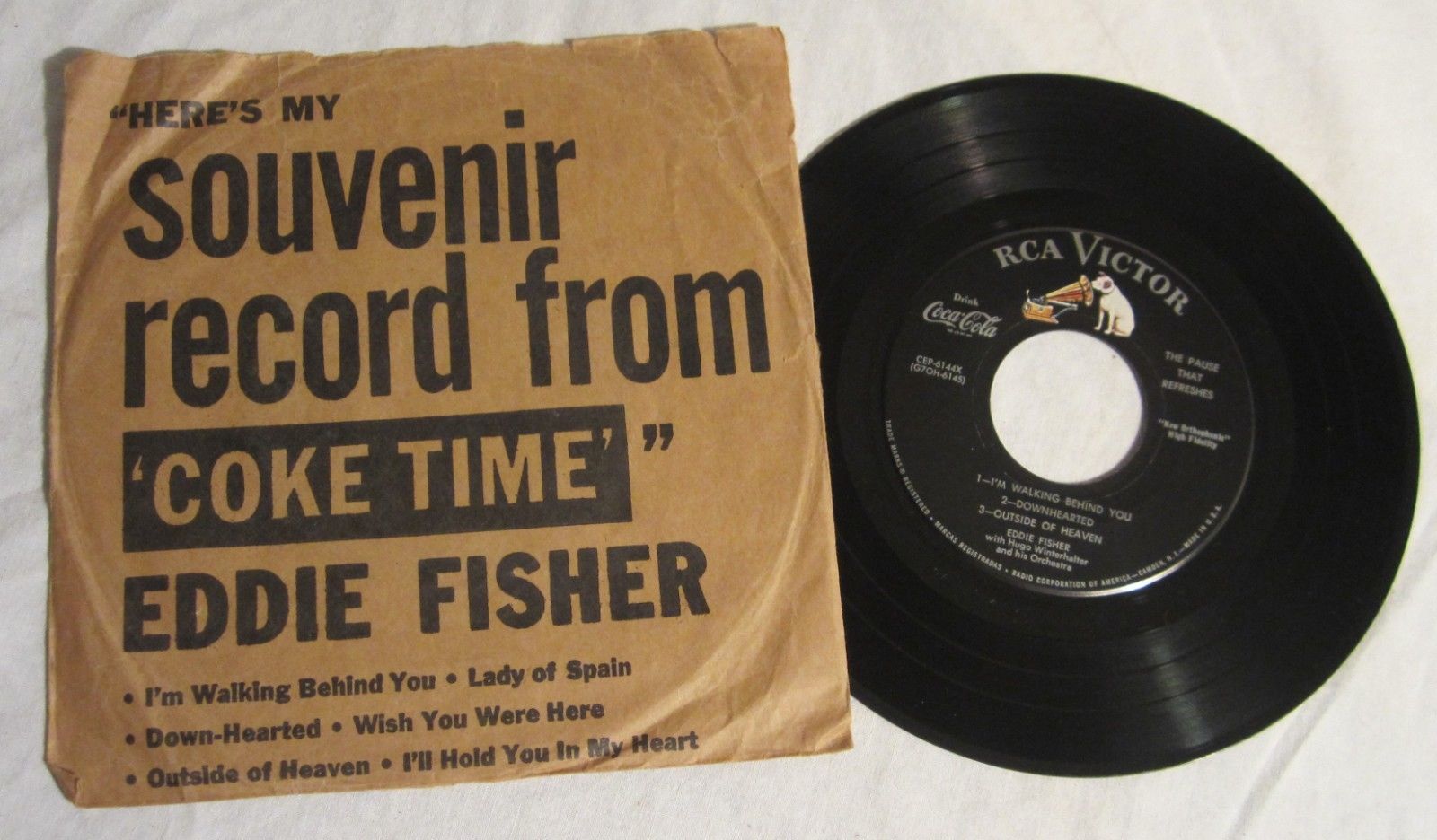 Title (ebay affiliate link): COCA-COLA -- Eddie Fisher 45rpm EP & Sleeve -- Souvenir Record from "Coke Time"