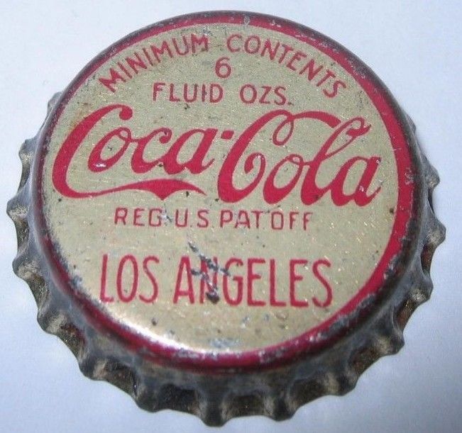 Title (ebay affiliate link): COCA-COLA SODA BOTTLE CAP; LOS ANGELES; REG U.S. PAT OFF 6 OZS.; USED CORK