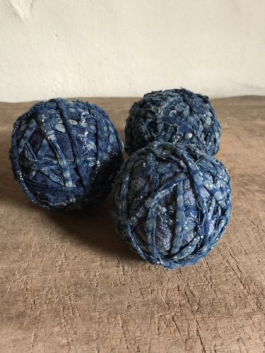 Title (ebay affiliate link): BEST Set Of 3 Early Antique Handmade Indigo Blue CALICO Rag balls Ragballs AAFA
