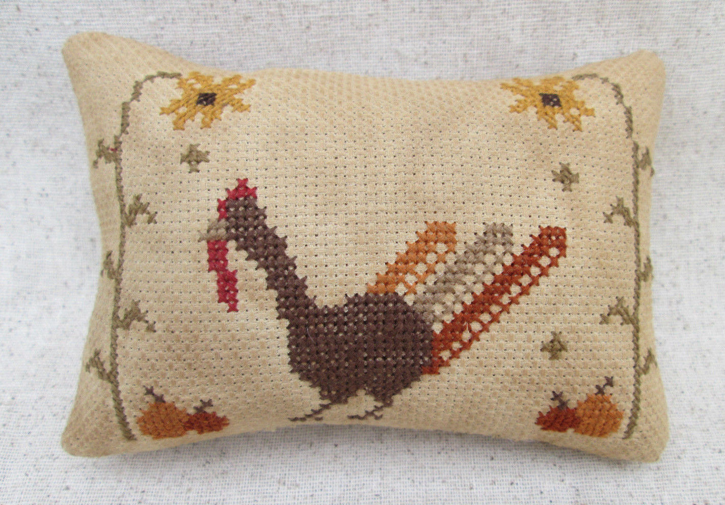 Title (ebay affiliate link): Primitive Handmade Cross Stitch Turkey Thanksgiving Pillow Tuck 5 1/4" x 3 1/2"