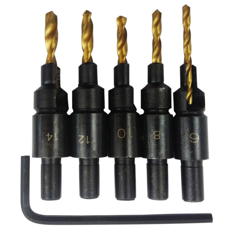 5 PCS Woodworkers Countersink Drill Bit #6 #8 #10 #12 # 14 Counterbore #ur6