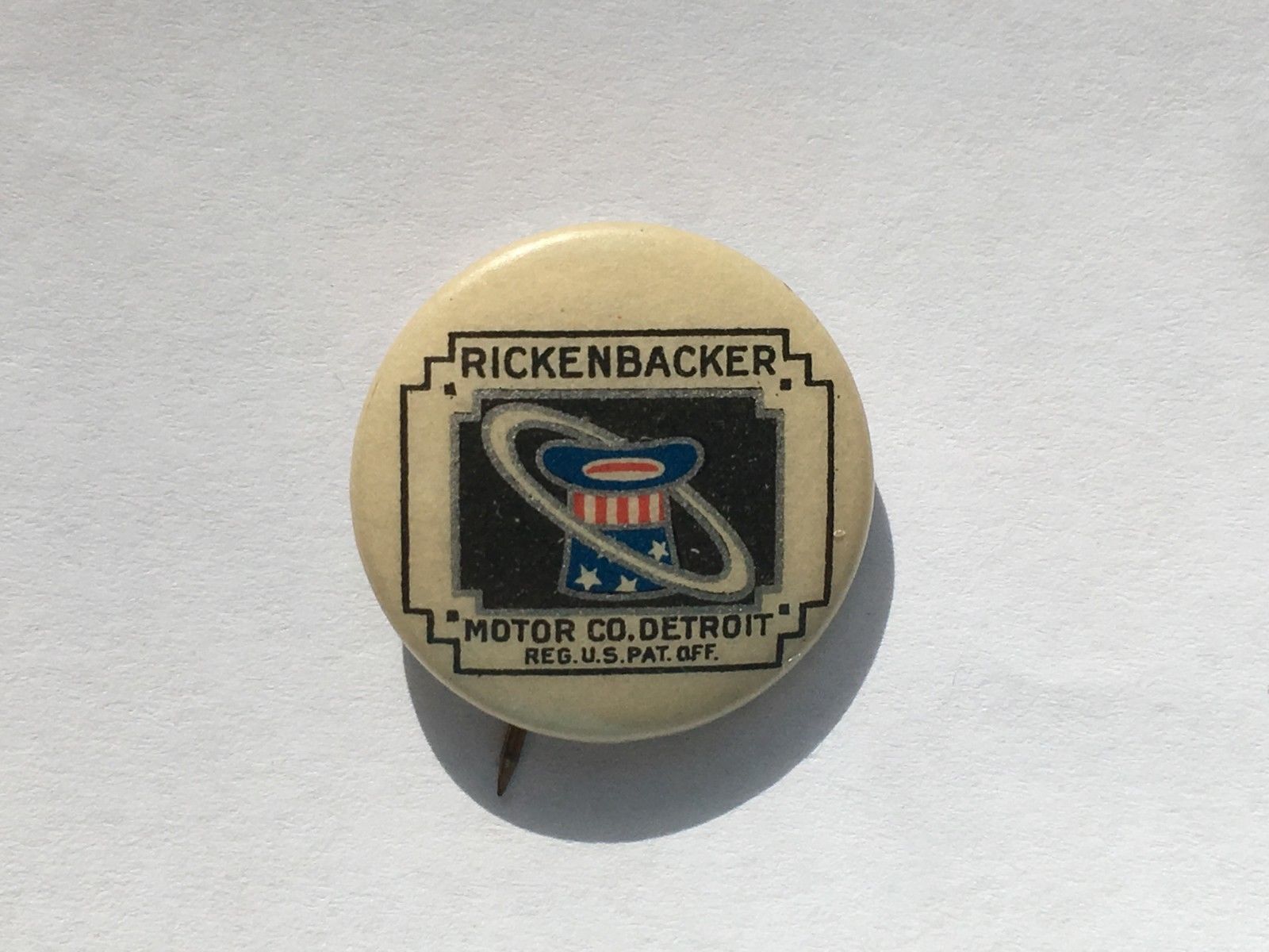 Antique Automobile Advertising Celluloid Pinback Rickenbacker Motor Uncle Sam