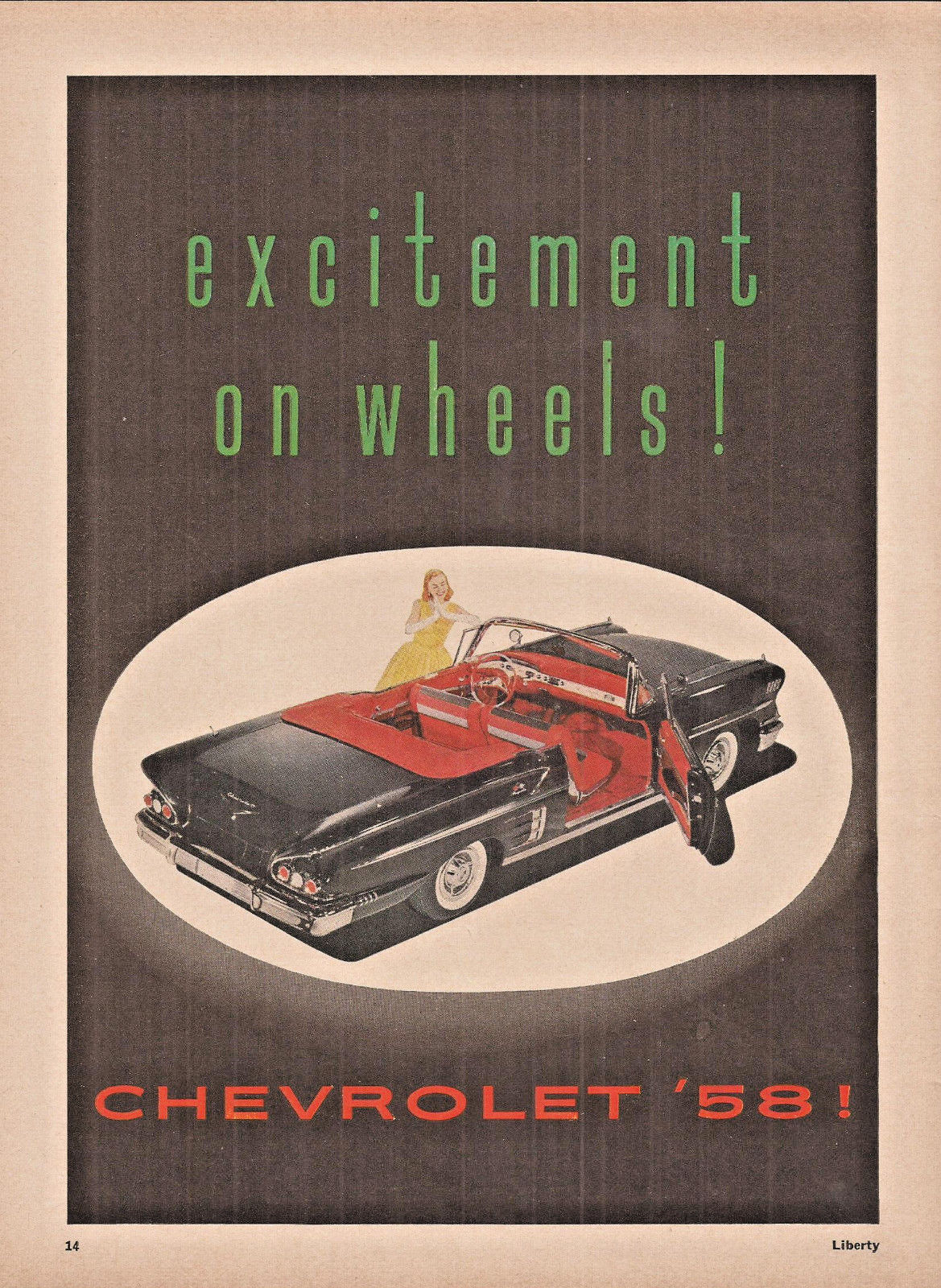 Title (ebay affiliate link): 1958 CHEVROLET CONVERTIBLE BLACK AUTOMOBILE ORIGINAL AD