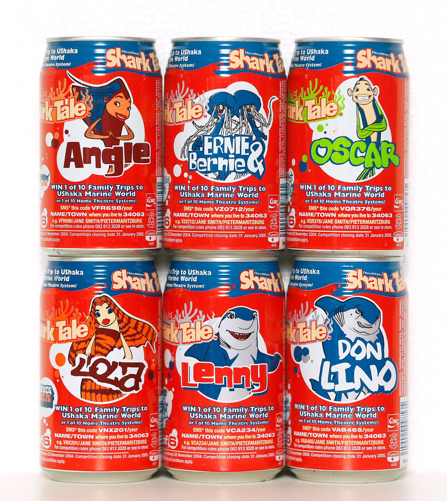 2004 Vanilla Coke / Coca Cola 6 cans set from South Africa, Shark Tale
