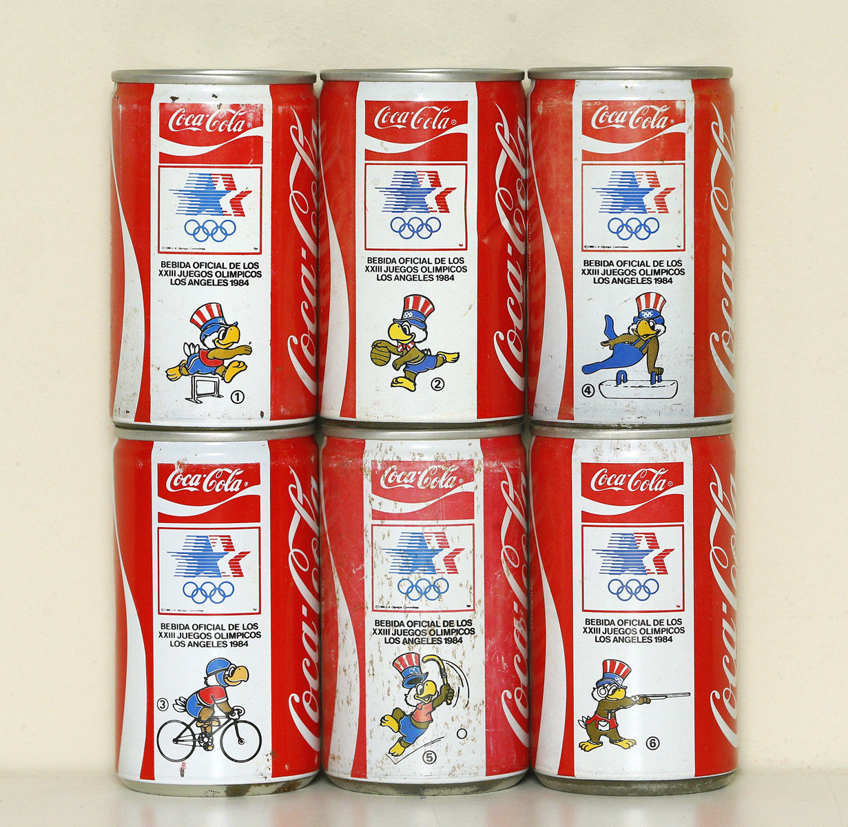 1984 Coca Cola 6 cans set from Spain, Olympics Los Angeles 1984