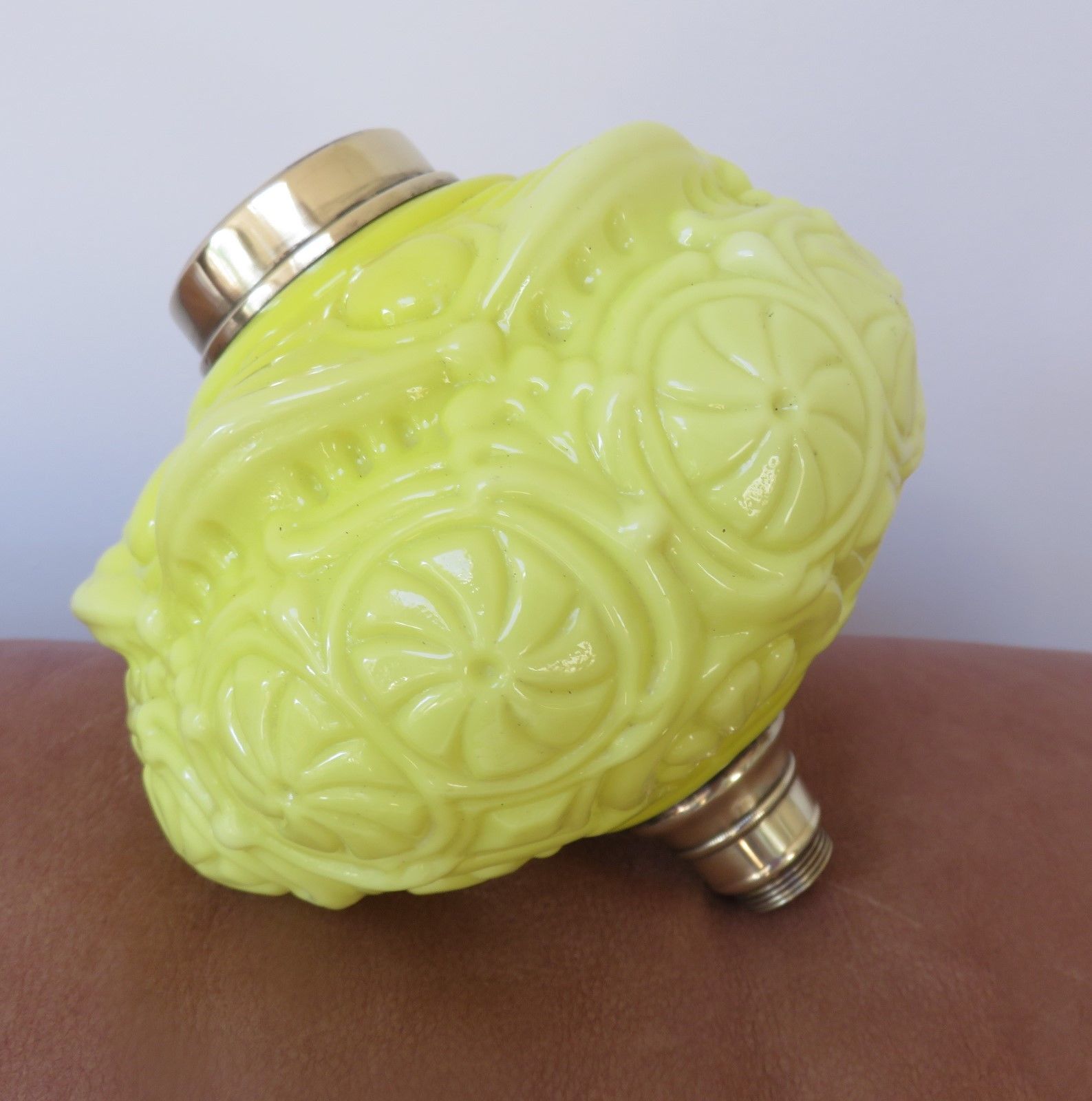 Victorian Moulded Acid Yellow Glass Oil Lamp Font, Art Nouveau pattern design.