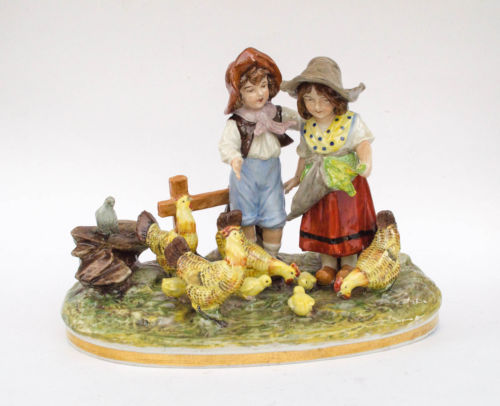 Title (ebay affiliate link): Large Dresden Porcelain Girl Boy w/ Chickens Group Figurine Germany Capodimonte
