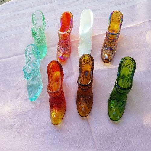 Title (ebay affiliate link): Lot of 8 Fenton Colored Art and Milk Glass Cat Slippers Hobnail Daisy & Button