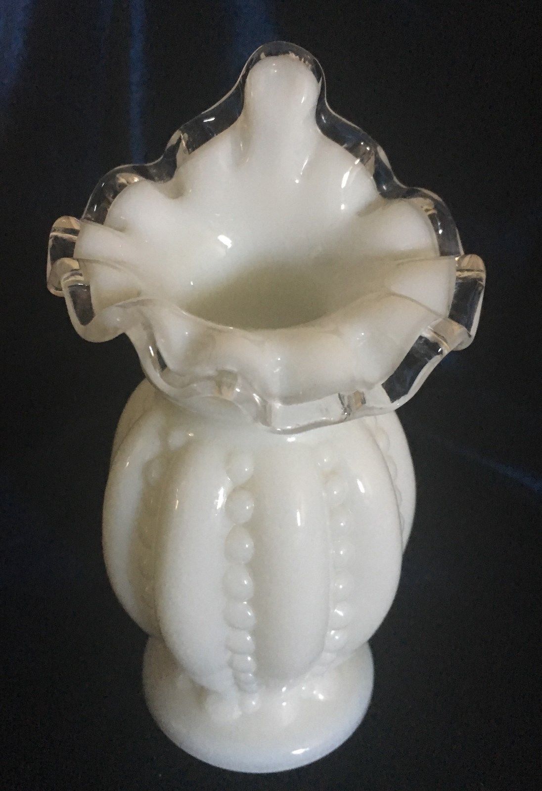 Title (ebay affiliate link): Fenton Art Glass Silver Crest Tulip Beaded Melon White Milk Glass Vase 5"