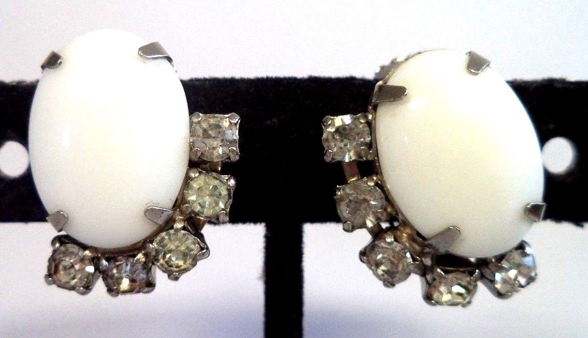 Title (ebay affiliate link): VINTAGE ESTATE JULIANA D&E MILK GLASS RHINESTONE FLOWER 7/8" CLIP EARRINGS G204O