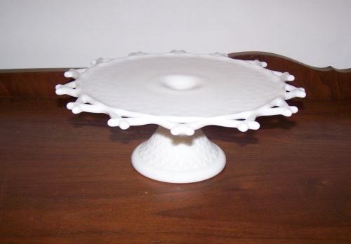 Vintage Milk Glass Round CAKE STAND LACED EDGE Imperial Glass Ohio