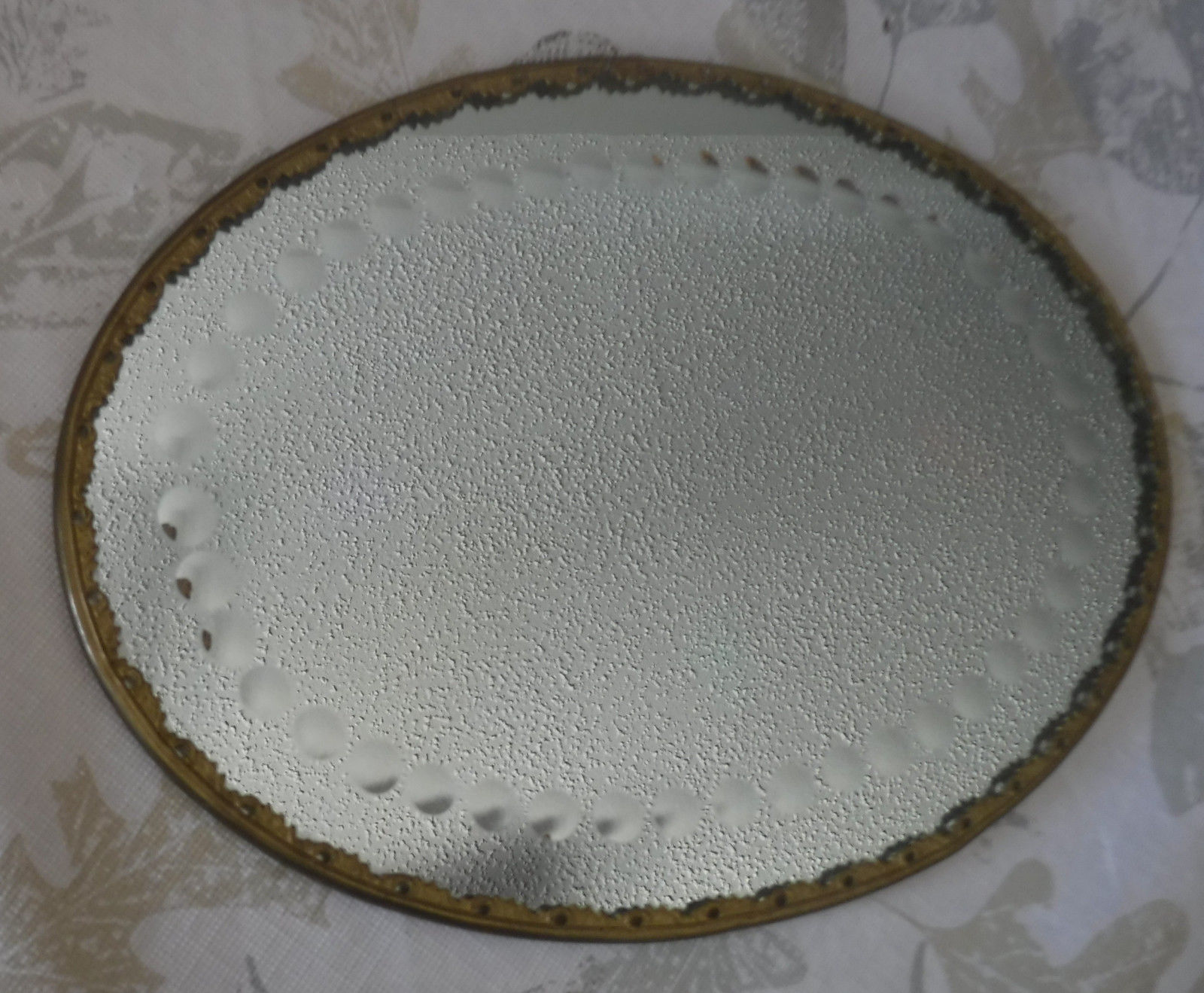 Etched Antique Glass Mirror~hanging Shaving~vanity~plateau~Brass frame