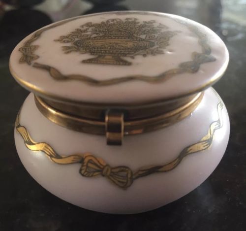 Antique Porcelain Trinket Box French Gilt Trim Hinged