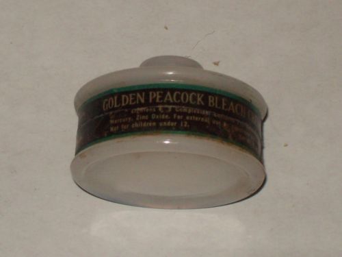 Title (ebay affiliate link): Vintage-Milk Glass-Jar-GOLDEN PEACOCK-Bleach-Creme-Cream-Cosmetic-Contents