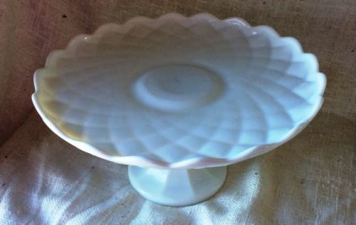 Title (ebay affiliate link): VINTAGE WHITE MILK GLASS RAISED PLATTER PEDESTAL TRAY (MA)