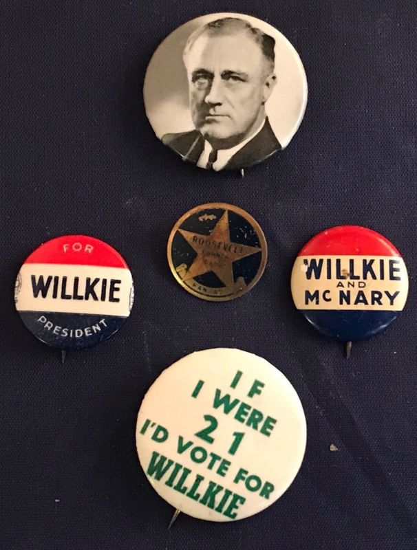 Title (ebay affiliate link): Political LOT PinBack.WILLKIE ROOSEVELT Button Campaign KS Garner Club Badge Pin