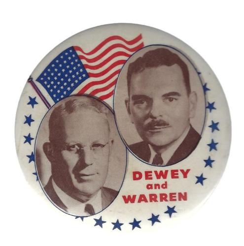 1948 DEWEY & WARREN FLAG JUGATE PICTURE CAMPAIGN BUTTON