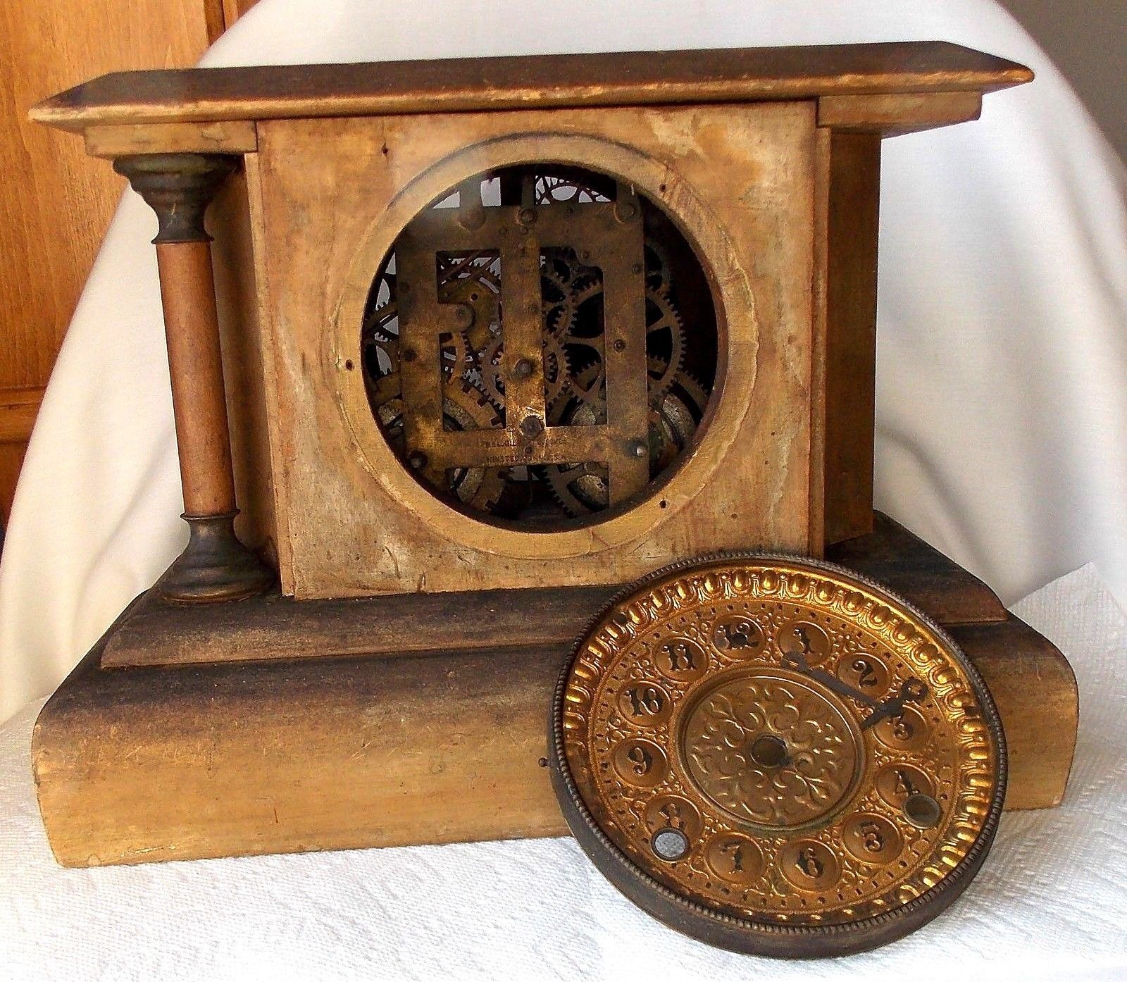 Title (ebay affiliate link): Antique Vtg Wm. Gilbert Priscilla Shelf Mantel Clock Wood Case Parts Repair Rest
