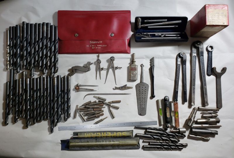 vintage lot of machinist tools starrett parallel blocks set ,bits J.H. Williams
