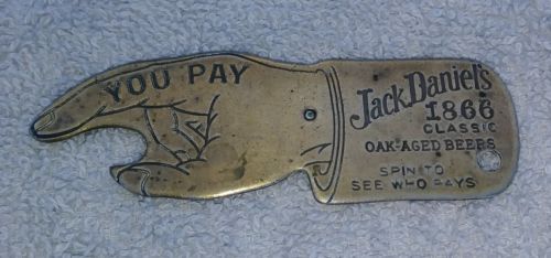 Vintage Jack Daniels Brass Can Opener/Key Chain " You Pay "