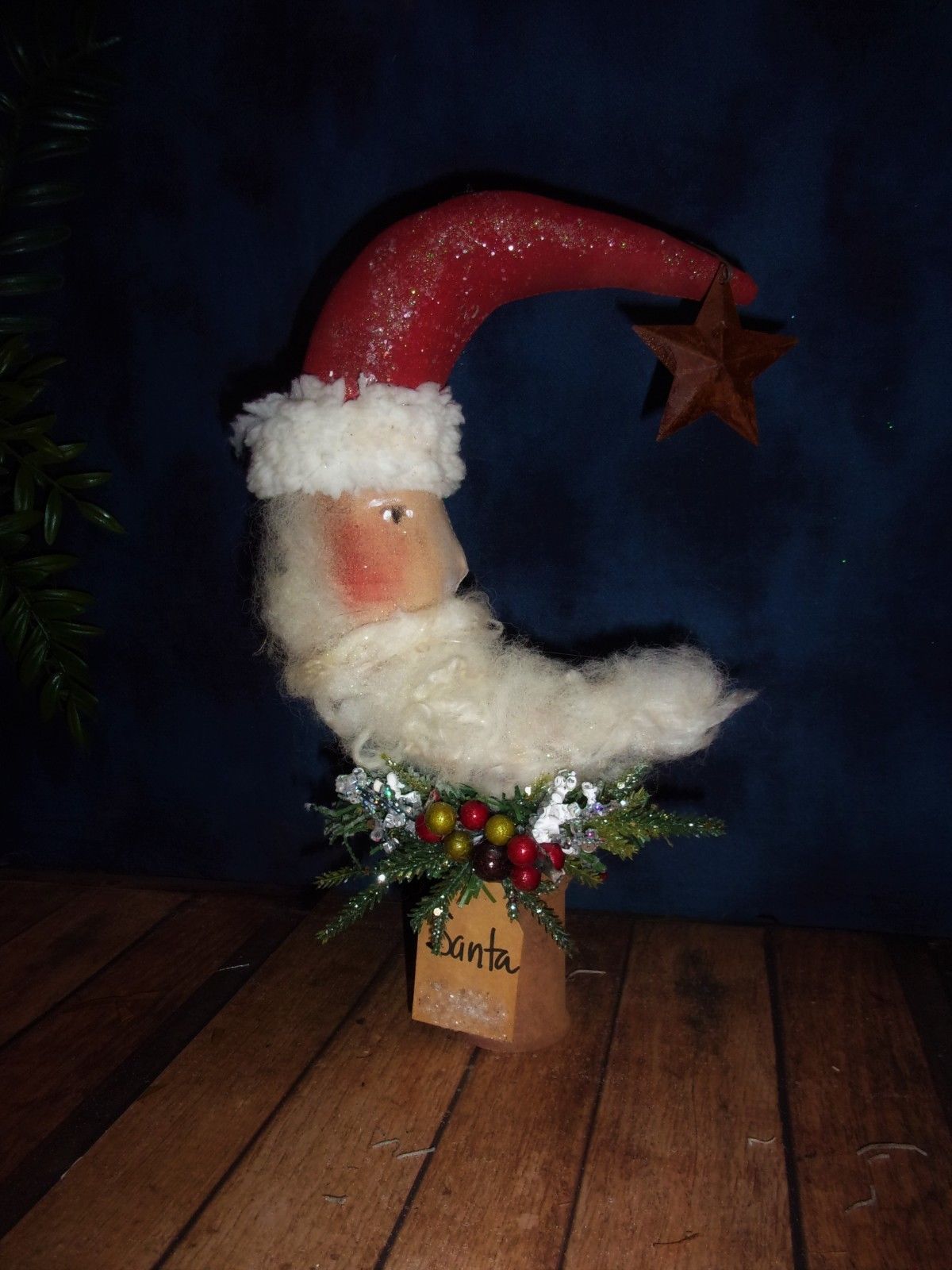 Title (ebay affiliate link): *Primitive 11x6in SANTA MOON BOBBIN SPARKLED Stuffed Country old rusty doll*