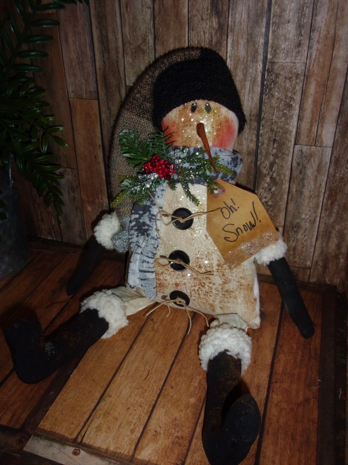 Title (ebay affiliate link): *Primitive 19x7in SPARKLED WHITE SNOWMAN BODY Stuffed Country old rusty doll*