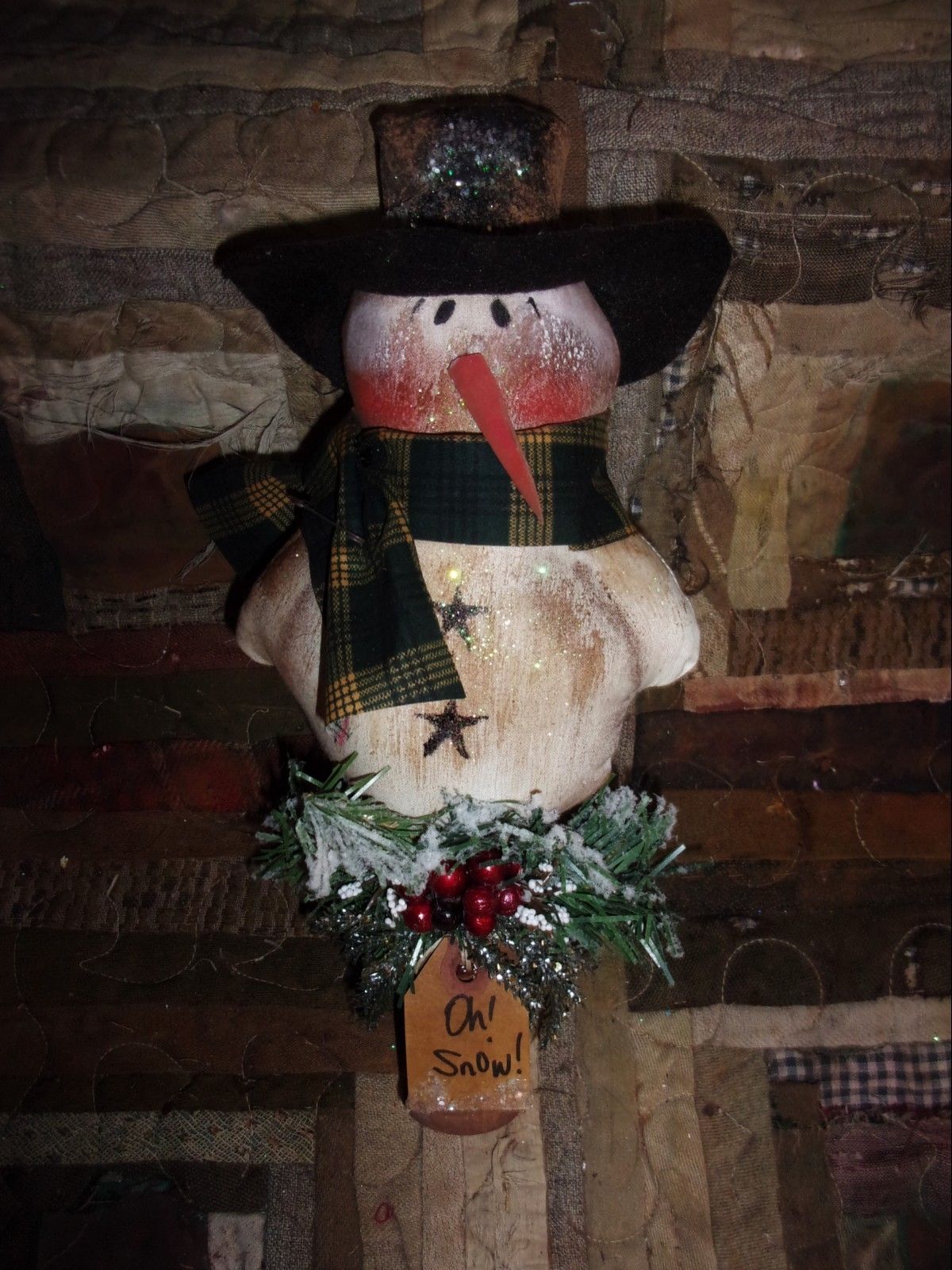 Title (ebay affiliate link): *Primitive 12x6in SPARKLED SNOWMAN BODY BOBBIN Stuffed Country old rusty doll*