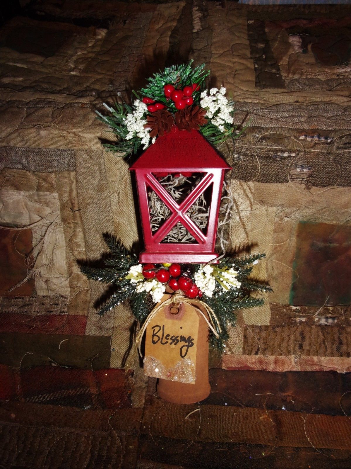Title (ebay affiliate link): *Primitive METAL RED LANTERN BOBBIN HOLIDAY Stuffed Country old rusty doll*