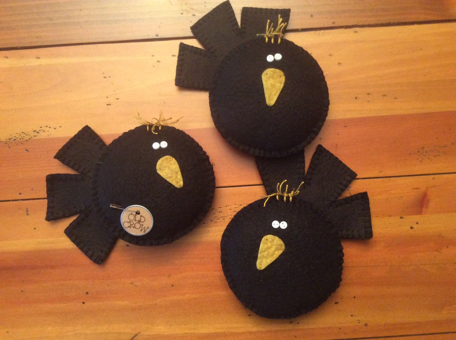 Title (ebay affiliate link): PRIMITIVE WOOL FELT BOWL FILLERS ORNIES SET OF THREE BLACK CROWS FOR FALL