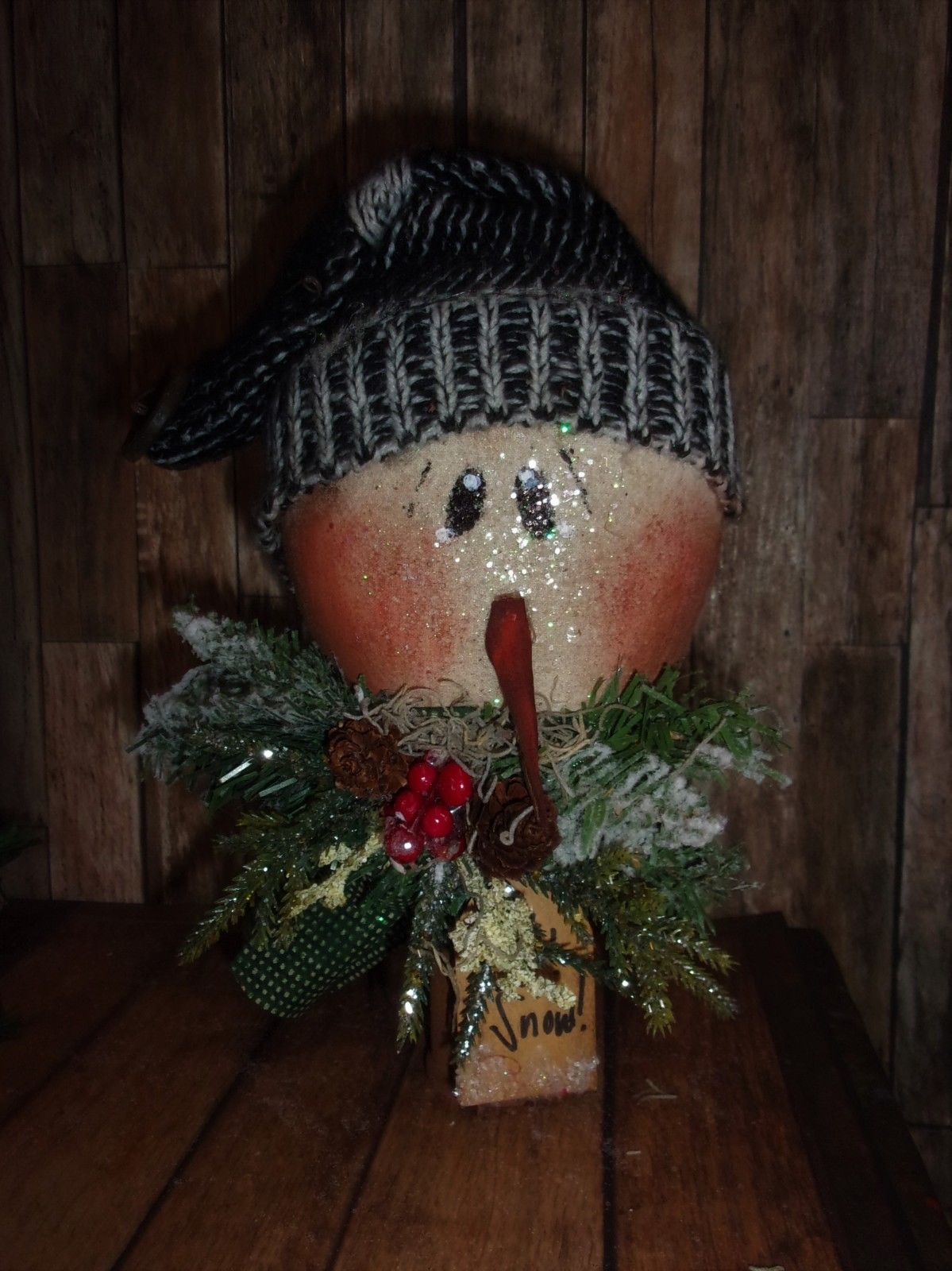 Title (ebay affiliate link): *Primitive 10x6in SPARKLED SNOWMAN HEAD BLACK CAP Country old rusty doll*