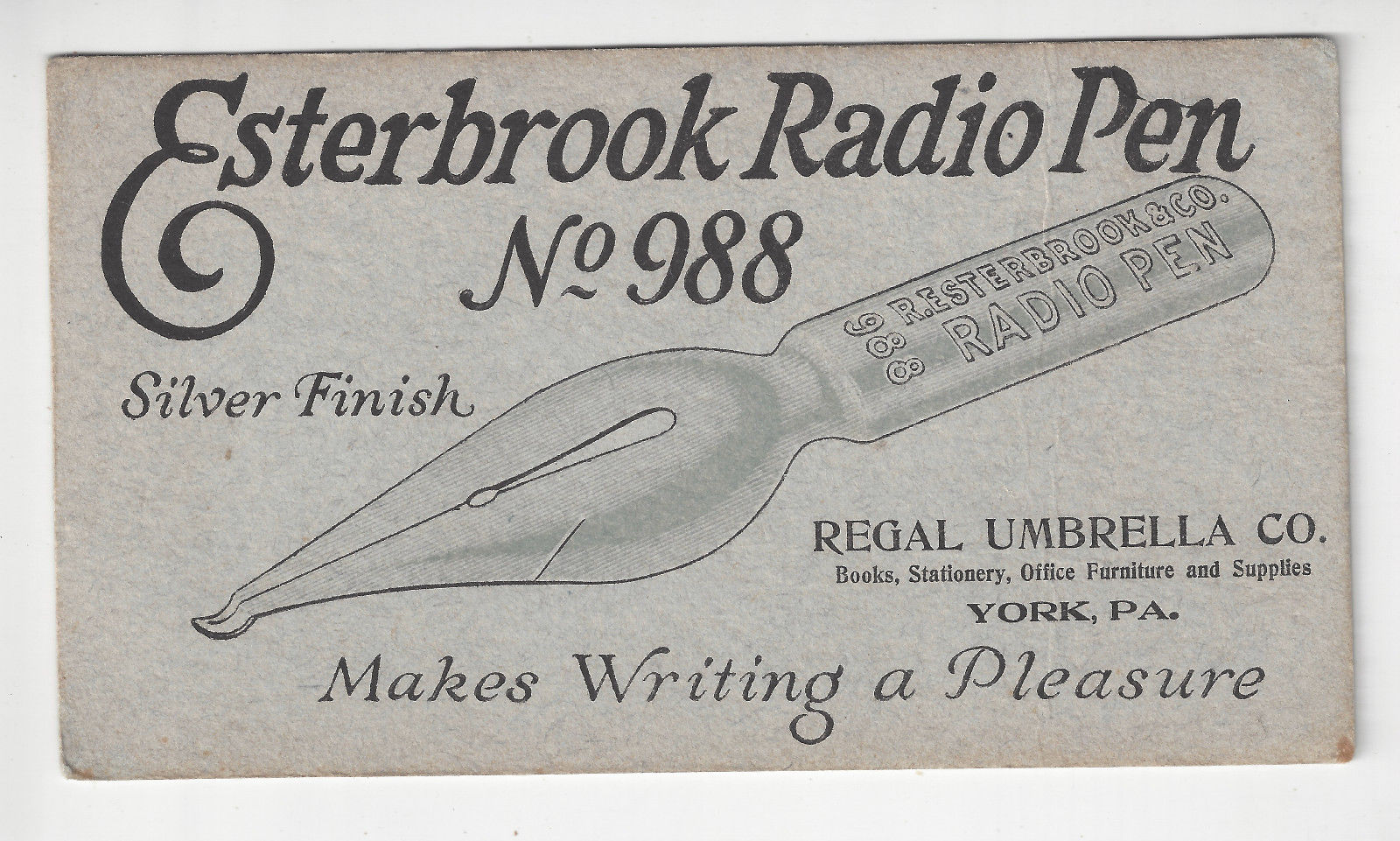 York, PA - Regal Umbrella Co. - Esterbrook Radio Pen No. 988 Adv. Ink Blotter