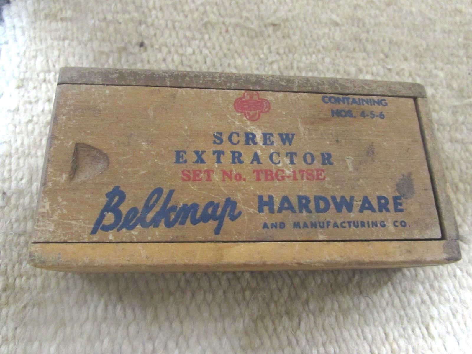 Title (ebay affiliate link): COMPLETE IN THE WOOD BOX BELKNAP BLUE GRASS SCREW EXTRACTOR SET TBG-17SE