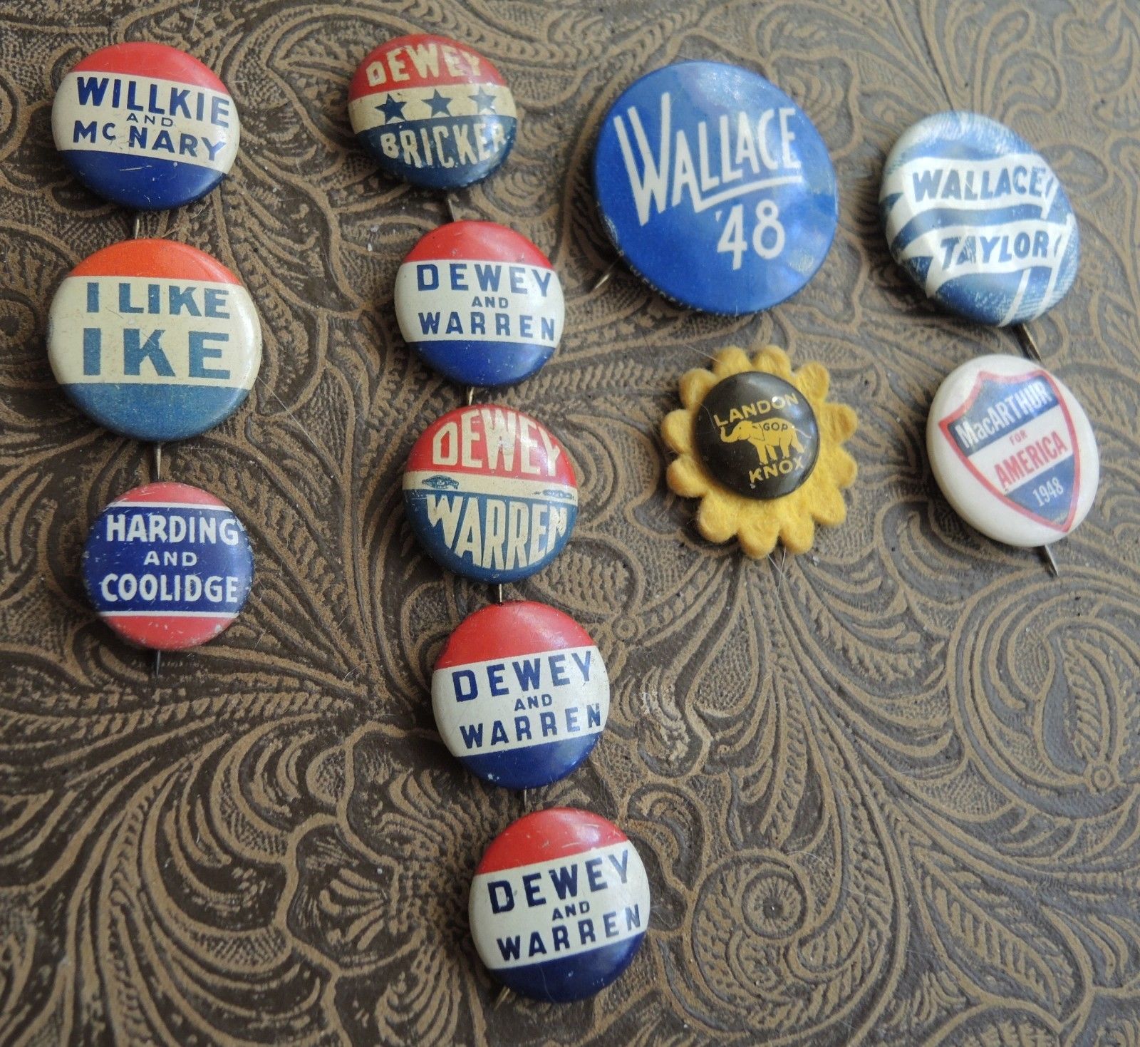 Title (ebay affiliate link): 12 Vintage Political Pins Buttons Ike Dewey Landon McArthur Wilkie Harding