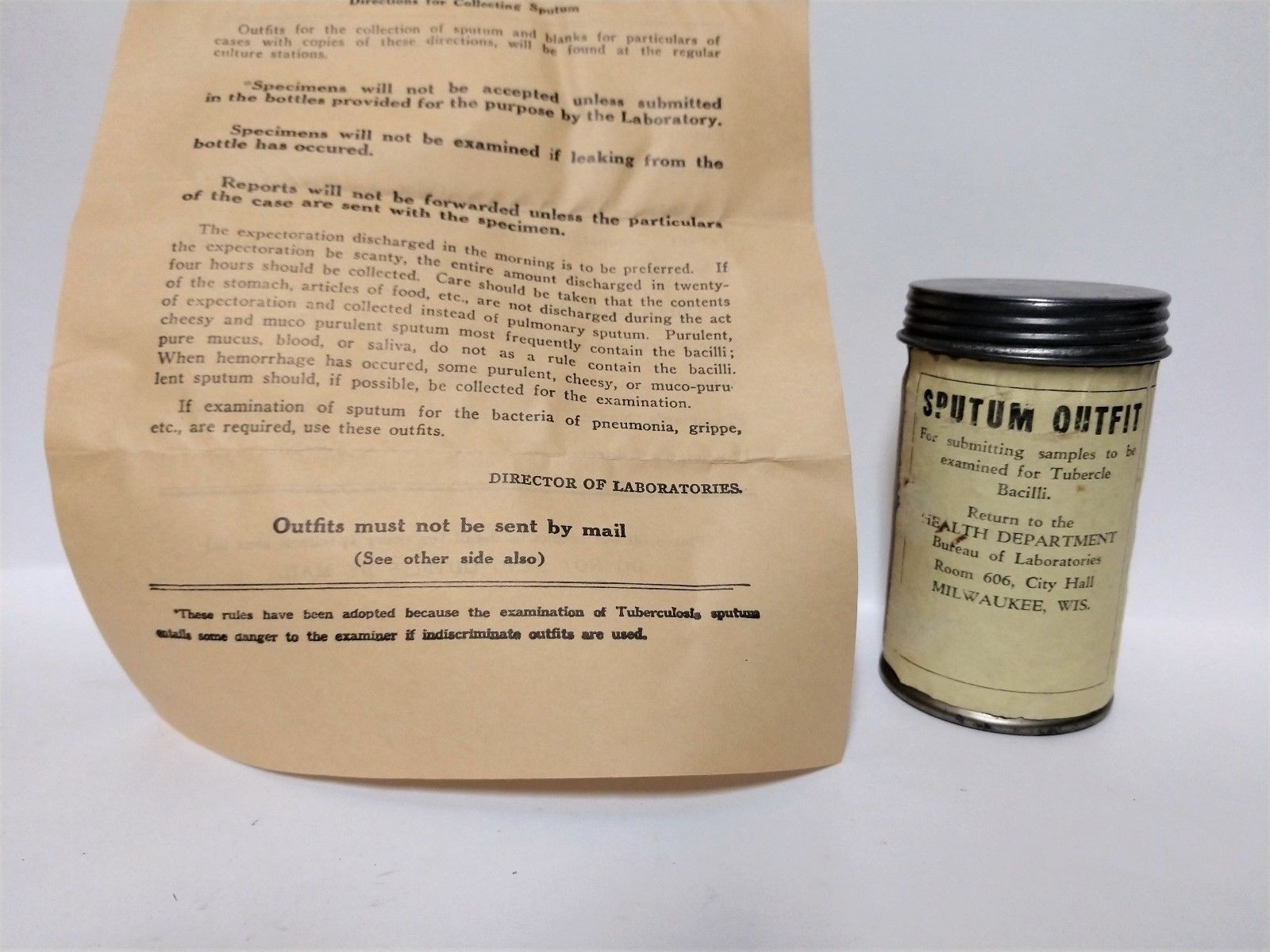 Vintage TUBERCULOSIS Sputum Outfit Collection Sample Container Instructions