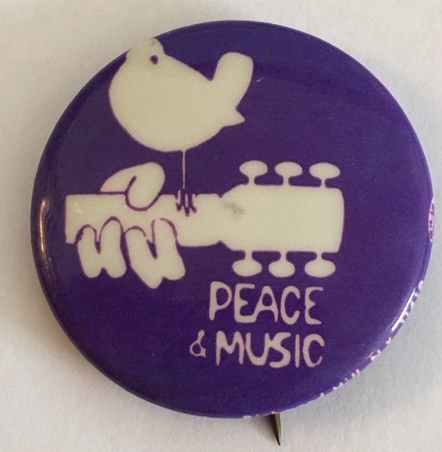 Title (ebay affiliate link): 1 1/2" Original Woodstock Peace and Music Pin