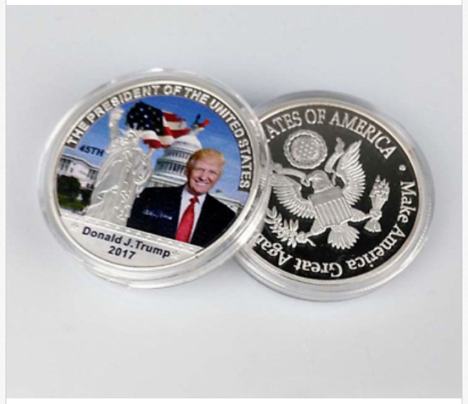 Title (ebay affiliate link): New Donald Trump 45th President US Silver Commemorative Coin Collection