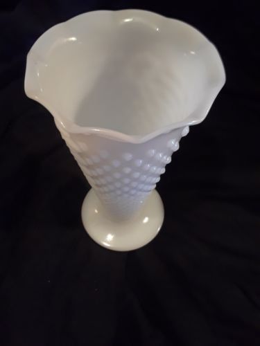 Title (ebay affiliate link): Vintage Fenton Hobnail Milk Glass Footed Ruffled Thumbprint Vase